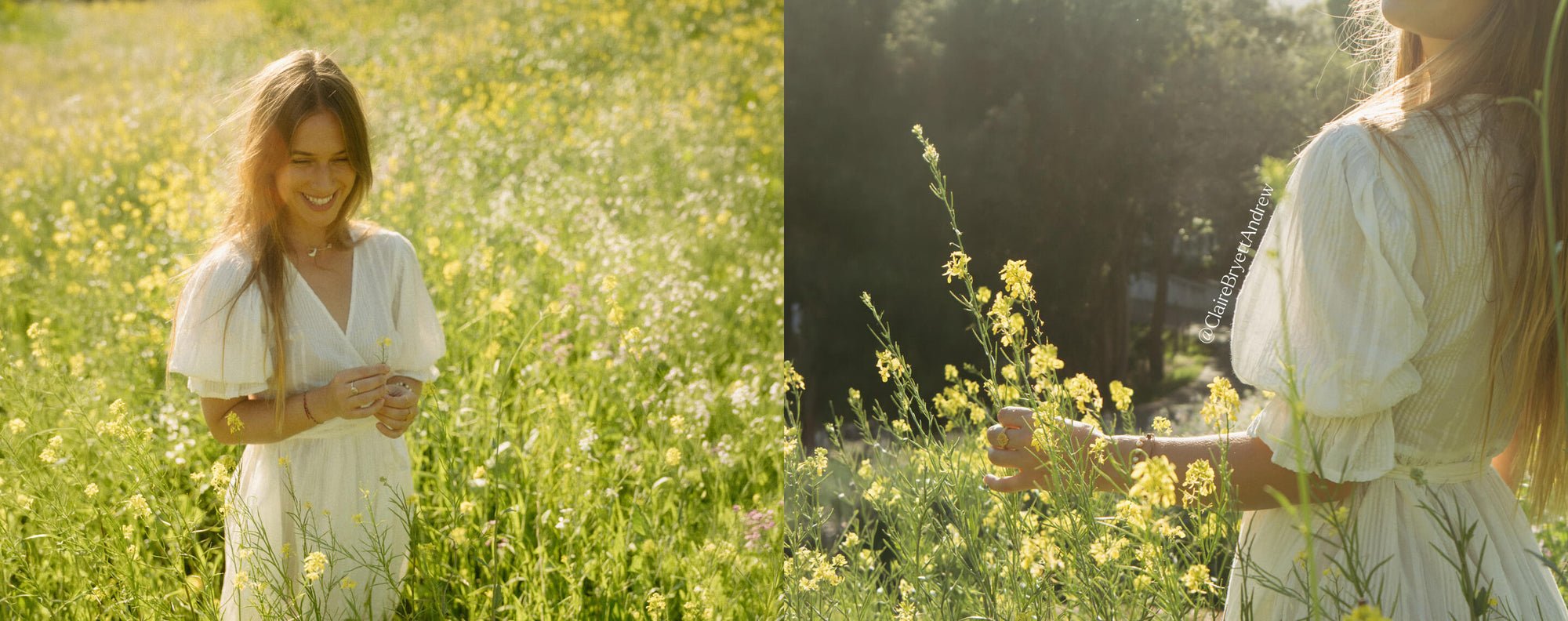 Kyra Midi Dress Blue Iris — seated on white steps, hand block print blue floral cotton midi | Daughters of India Kyra Midi Dress Blue Iris — back view showing flowing silhouette, hand block print cotton | Daughters of India